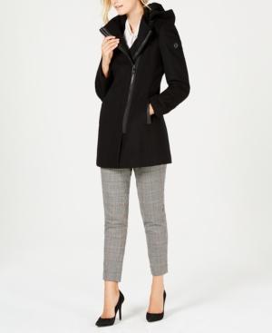 Calvin Klein Wool Blend Faux Leather Trimmed Asymmetrical Zip Coat